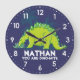 Reloj gráfico de pared con un dinosaurio Stegosaurus. Perfecto para los paleontólogos de dinosaurios en ciernes y habitaciones infantiles amigables con dinosaurios. Personaliza con tu propio nombre y palabras, actualmente lee Phillipp que eres dino-mite.