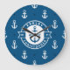 Redondo Grande Patrones de ancla azul boda náutico Gran Reloj