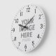 Foto de gran ronda de Personalizado de Wall Clocks personalizados. Presenta tu propia foto y texto en este reloj. Los números permanecen en su imagen. Perfecto para decorar su casa, cocina u oficina. Para obtener los mejores resultados, utilice una imagen cuadrada.