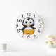 Redondo Grande Pingüino lindo en el reloj de la pared blanca