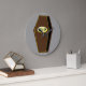 Este reloj impresionante presenta un ataúd espeluznante hecho de madera con un borde dorado. La tapa del ataúd está ligeramente abierta, lo que revela sólo oscuridad en el interior. La placa dorada en la parte delantera del ataúd tiene un espeluznante texto negro que dice RIP, sin dar idea de quién o qué puede estar acechando dentro. Este divertido pero siniestro ataúd es ideal para Halloween. El fondo gris oscuro actúa para atraer el ojo del observador hacia el ataúd de la fatalidad.