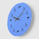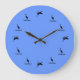 Representaciones gráficas en negro sobre fondo azul claro, de un pájaro en vuelo en las posiciones 12, 3, 6 y 9, e imágenes de pájaros más pequeñas en otras posiciones de la cara del reloj.