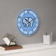 Reloj azul con un diseño lindo de un elefante. ¿Adornamiento de un cuarto de niños, de la sala de juegos del niño o del dormitorio del niño? ¡Un reloj lindo es el accesorio perfecto! Este reloj también haría un recién nacido inolvidable o un nuevo regalo casero.