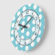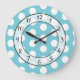 Redondo Grande Reloj caprichoso de puntos de polka azul y blanco