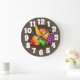 reloj con fruta sobre fondo marrón, el color de fondo detrás de los números puede cambiarse.
