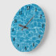 Reloj de temática azul con fondo de agua de una piscina con reflejos claros