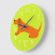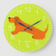 Redondo Grande Reloj de arte verde animado: diseño de perro de la