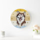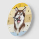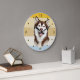 Redondo Grande Reloj de atardecer retro de perro de Malamute