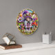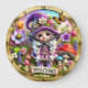 Este encantador hotel de 24 horas ofrece una magnífica imagen de una escena caprichosa, perfecta para darle un toque acogedor a cualquier espacio de Sydney. Un bonito chica gnomo con pelo trenzado blanco y un gorra y vestido color morado floral se alza en medio de un vibrante jardín lleno de flores de colores, hongos y mariposas floridas bajo un cielo azul y rosa suave. Un cartel en la parte inferior dice con dulzura "BIENVENIDOS". El reloj está decorado con un marco dorado que realza su bonita estética inspirada en la fantasía.