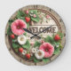 Este encantador reloj mural da la bienvenida a los huéspedes con el encanto del campo. El mensaje "BIENVENIDA" está rodeado de hermosas glorias matutinas en tonos rosa y blanco, exuberante vegetación y fresas maduras, todo ello rodeado de un marco rústico de estilo burpón y un borde de cuerda. Perfecto para cocinas, entradas o cualquier espacio que necesite un toque de frescor al jardín.