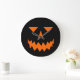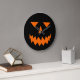 Naranja en la cara de linterna de calabaza negra con ojos y nariz triangulares y una sonrisa malvada.