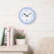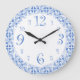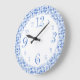 Reloj de patrón retro divertido en elegantes y crudos números juguetones en azul y blanco.