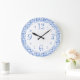 Redondo Grande Reloj de cocina blanca y azul retro divertido