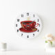 Redondo Grande Reloj de cocina de la Copa del Café Rojo