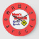 Redondo Grande Reloj de cocina roja retro de mamá
