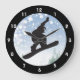 Reloj de diseño Snowboard con color de acento de personalizable (copos de nieve) y texto de personalizable. Para que no haya texto, elimine el texto de ejemplo y deje en blanco.