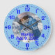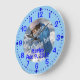 Redondo Grande Reloj de encargo azul del texto de la foto con la