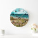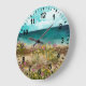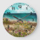 Redondo Grande Reloj de flores silvestres costeras de paisaje acu