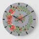 Los Red Peonies hacían un reloj en un fondo gris. Diseño de bonito permanente con brotes y hojas verdes. Gracias al Hungryjpeg por algunos de los elementos del diseño