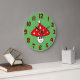 Un reloj con hongos festivos y números rojos a juego.
