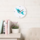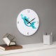 El reloj liso, contemporáneo ofrece una sirena de la acuarela de la aguamarina contra un fondo blanco limpio. Números y manos negros.
