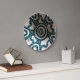 ¿Necesitas más tiempo? Este es el reloj para ti. Los números se organizan en el sentido contrario a las agujas del reloj para las personas que son siempre cortas a tiempo o para quienes simplemente quieren volver el reloj a una época anterior. Diseño étnico en turquesa.