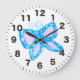 Hice un reloj con una foto de una mariposa que mi hija escribió con lápices de colores.