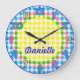 Reloj infantil Pastel personalizado con números de color azul, rosa, verde y amarillo hacen de la base del reloj. Los números, bordeados para una visualización fácil, se terminan en colores coordinados.