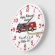 Este divertido reloj de pared personalizado es perfecto para amantes de camiones de bomberos y bomberos. Tiene un diseño con un camión de bomberos personalizados, incluyendo una manguera. Puede cambiar el color de fondo si lo desea. Dice: "Feliz Jubilación, Andrew. De todos nosotros en la Estación 57." Agregue sus propias palabras en lugar del nombre de ejemplo y la información de la plantilla que desea personalizar. El reloj tiene números rojos y puntos durante minutos. Puede eliminarlos si lo desea. Tiene un número 10 en el camión. Puede cambiar ese número en la plantilla si desea personalizarlo. Este es un regalo perfecto de cumpleaños o retiro para un bombero o bombero con el que trabajas. O un regalo de agradecimiento para alguien que te salvó la vida. Encuentra otros relojes de pared personalizados en el lápiz de Alina.