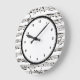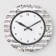 Redondo Grande Reloj de notas de música en blanco y negro con núm