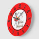 Redondo Grande Reloj de números retro negro rojo de la cocina