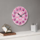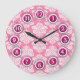 Redondo Grande Reloj de patrón de damasco rosa y blanco