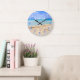 Redondo Grande Reloj de playa de arena azul personalizado