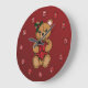 Este oso de peluche dulce y marrón se ha adornado con un poco de holly para que pueda crear un gran ánimo Navidad para darle a alguien un regalo especial de una poinsettia roja bonito.