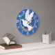 paloma de paz azul y blanco y reloj de diseño de signo de paz con números blancos.
