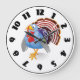 Un pavo que se coloca orgulloso. Esto es un pavo muy colorido del estilo del dibujo animado. Tiene una expresión graciosamente en su cara y está mostrando todas sus plumas y colores. Este luce increíble del diseño del pavo en este reloj. Perfeccione para sí mismo o como regalo