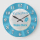 Redondo Grande Reloj de VOLEIBOL turquesa con NOMBRE y NÚMERO