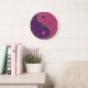 Redondo Grande Reloj de Yin Yang en púrpura y rosa
