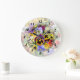 ¡Un reloj bonito del diseño del pensamiento, trayendo la alegría de estas flores amadas en su hogar, animarle durante todo el año! Los números de reloj se pueden cambiar a cualquier fuente que usted desee, pero un cierto ajuste puede ser necesario. ¡Un regalo precioso para los amantes del pensamiento!