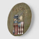 reloj del país con imagen del fondo de madera. barrell de madera y manzanas lindas. Perfeccione para una decoración del adorno de la caída o del país de orígen