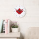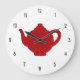 Una moderna tetera roja minimalista en un reloj blanco con números de reloj escritos a mano. Actualice su decoración de cocina con este gran regalo personalizado.