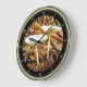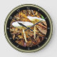 Delicados hongos del bosque entre la camada de la selva marrón golpean coros emotivos cálidos en este reloj, números amarillos suaves sobre fondo negro