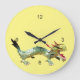 Redondo Grande Reloj - Dragón oriental sobre amarillo