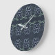 Reloj de diseño con una moderna huella de flores en azul marino. Los detalles blancos se pueden personalizar en cualquier color.