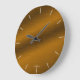 Este elegante reloj de personalizable presenta un diseño de fondo que reproduce el aspecto de metalizado cepillado en un rico tono de bronce. Las horas están marcadas con líneas de luz, pero no hay números para una apariencia elegante y mínima. Añade tus propias imágenes o texto para un reloj personalizado, o déjalo como está, para un reloj de oro perfecto que irá a una decoración variada.