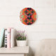 Redondo Grande Reloj floral audaz diseñado con rojo y negro