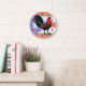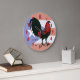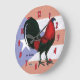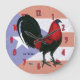 Redondo Grande Reloj gallo rojo negro