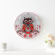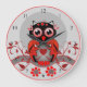 Redondo Grande Reloj lindo del búho del dibujo animado en rojo,