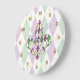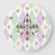 Los brillantes diamantes de color violeta y verde, recubiertos de diamantes de color dorado, y el flur de lis recuerdan la juerga y las celebraciones asociadas con el mardi gras de Nueva Orleans, mientras que una base crema aporta un toque de refinamiento a este patrón de argyle. El patrón está enmascarado detrás de la silueta de un fleur de lis para añadir una divertida nota final.