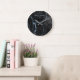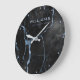 Redondo Grande Reloj mínimo de mármol negro y azul personalizado